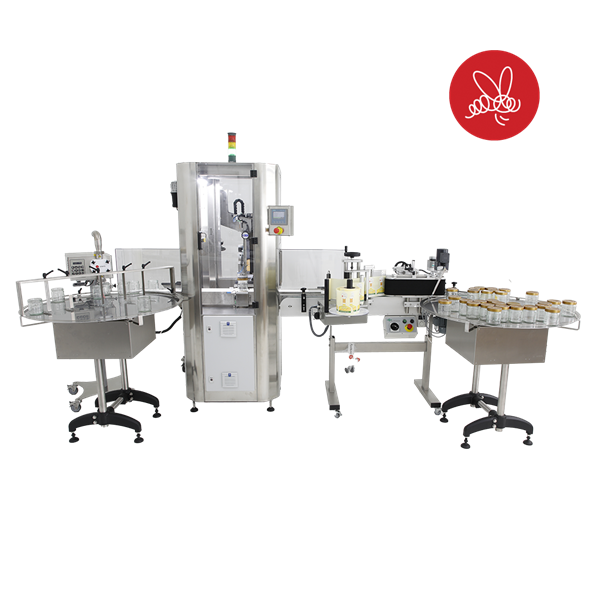 이 시스템 으로 한 번에 채우고, 뚜껑을 닫고, 뚜껑을 나사로 고정하며, 라벨을 붙일 수 있습니다.